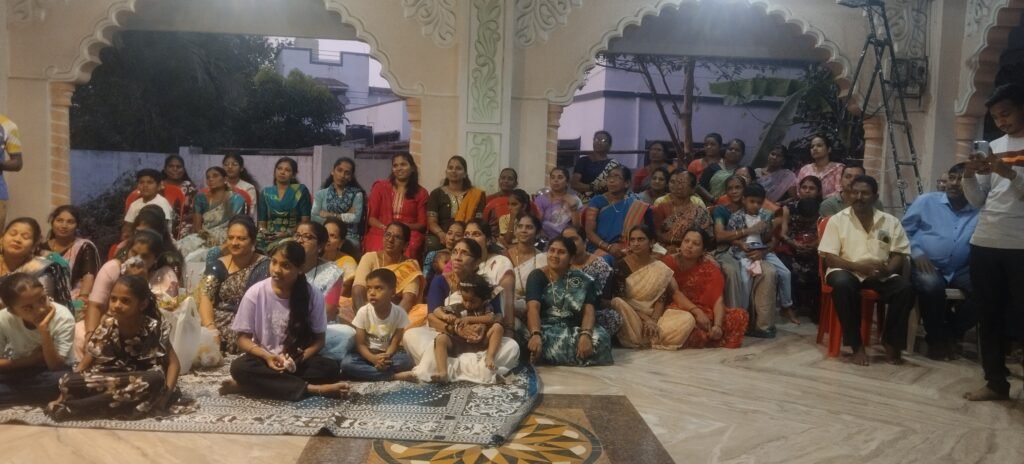 पंचमुखी हनुमान मंदिरातसत्कार समारंभात उपस्थित ग्रामस्थ, महिला, लहान मुले