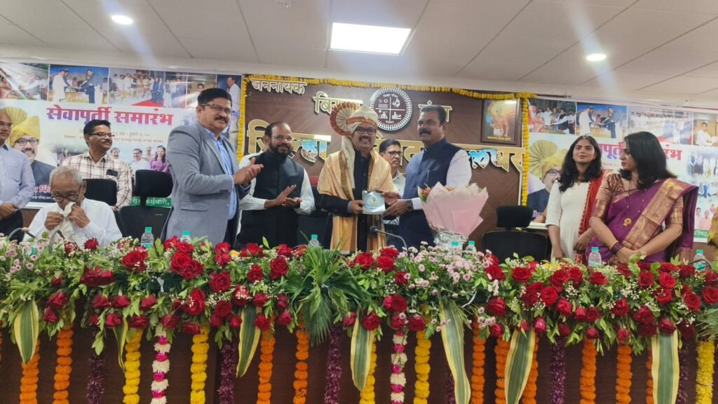 आपल्या मनोगतात रवींद्र शिंदे यांनी ३५ वर्षांच्या प्रदीर्घ सेवाकाळाचा शांत आणि संयत आढावा घेतला. विविध पदांवर काम करताना आलेले अनुभव, आव्हाने आणि त्यावर मात करताना जपलेली शिस्त, पारदर्शकता व जबाबदारी यांचा त्यांनी उल्लेख केला. “अधिकारी व कर्मचाऱ्यांच्या सहकार्यामुळेच अनेक उपक्रम यशस्वी झाले,” असे सांगत त्यांनी सर्वांचे आभार मानले. तसेच आपल्या आयुष्यातील यशामागे आई-वडिलांची मोलाची साथ असल्याचे सांगत त्यांनी त्यांच्याप्रती कृतज्ञता व्यक्त केली.