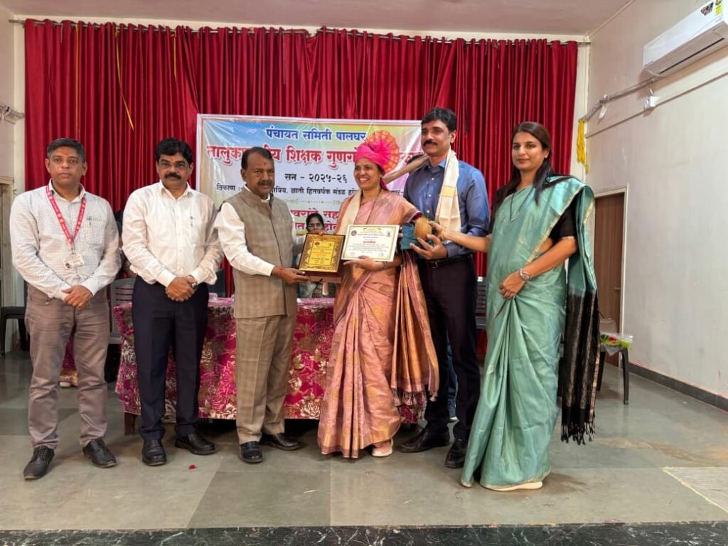 शिक्षण विभाग पंचायत समिती पालघर यांच्या वतीने आयोजित तालुकास्तरीय आदर्श शिक्षक गुणगौरव पुरस्कार वितरण सोहळा (2025-2026) सूर्यवंशी क्षत्रिय ज्ञाती मंडळ सभागृहात पार पडला. या सोहळ्यात मुख्य अतिथी म्हणून आमदार राजेंद्र गावित उपस्थित होते. यावेळी गट विकास अधिकारी संजय भोये, गट शिक्षण अधिकारी शैलेश सुर्वे, विस्तार अधिकारी माधवी दवणे, राजेश माळी, विल्मा पेन, वंदना पाटील, केंद्र प्रमुख तसेच मुख्याध्यापक व शिक्षकवृंद मोठ्या संख्येने उपस्थित होते.