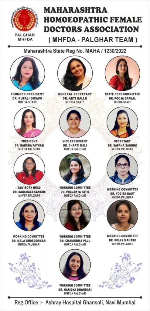 संस्थेचे पदाधिकारी – संस्थापक अध्यक्षा (राज्य स्तर) : डॉ. रुपाली गोसावी, महासचिव (राज्य स्तर) : डॉ. आरती नल्लू, कोअर कमिटी सदस्य (राज्य स्तर) : डॉ. पूजा डफळ यांच्या मार्गदर्शनाखाली पालघर जिल्हा कार्यकारिणीची निवड करण्यात आली. त्यामध्ये अध्यक्षा : डॉ. रक्षा पाठक, उपाध्यक्षा : डॉ. धरती माळी, सचिव : डॉ. सपना संखे, सल्लागार प्रमुख : डॉ. दक्षता संखे, तसेच कार्यकारिणी सदस्य : डॉ. प्राजक्ता पाटील, डॉ. योगिता राऊत, डॉ. माला गूडसूरकर, डॉ. चंद्रिमा पॉल, डॉ. रोल्ली महत्रे, डॉ. हरिद्या भंडारी यांचा समावेश करण्यात आला आहे.